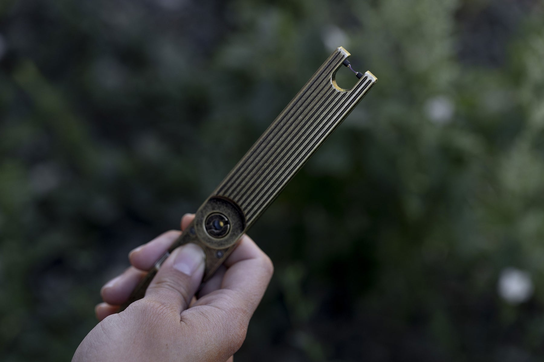 Made with high-quality die-cast zinc parts and finished with a tumbled brass coating, the Pivot Arc Lighter is built to last, and the wind-proof design ensures use in all weather conditions.