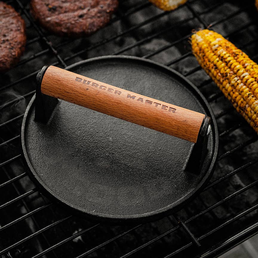 Crush your grilling game with the LUCKY JACK Burger Master cast iron press—the ultimate weapon for searing perfectly smashed burgers that'll blow store-bought patties out of the water. This beast doesn't stop at burgers; flatten bacon to crispy perfection, char sandwiches into golden glory, and tackle hash browns like a pro. Built tough from cast iron, it's engineered for serious grill masters who refuse to settle for ordinary. Your backyard cookouts just got a major upgrade.